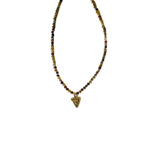 Handmade necklace featuring agate beads with natural patterns, complemented by a 24k gold-plated pendant (3-micron thick).